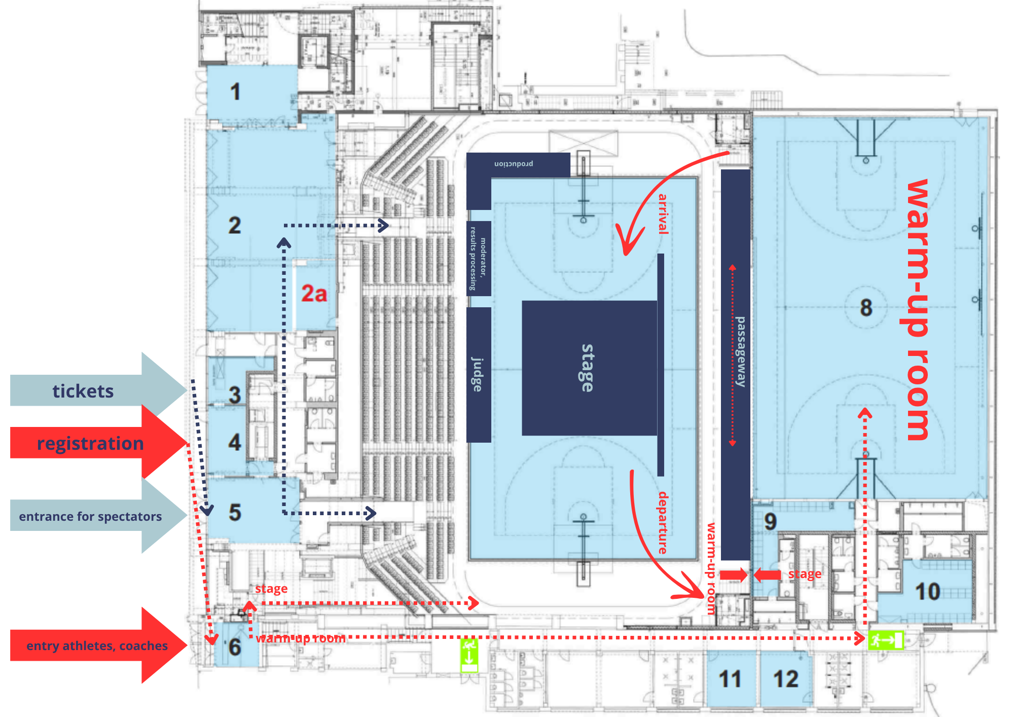Akreditace účastníků závodu: v úterý od 9:00 hodin v prostorách FanShopu sportovní haly (vpravo vedle pokladny zvenku haly). Vstup do haly přes security pouze s akreditací na krku vchodem číslo 3 pro personál.